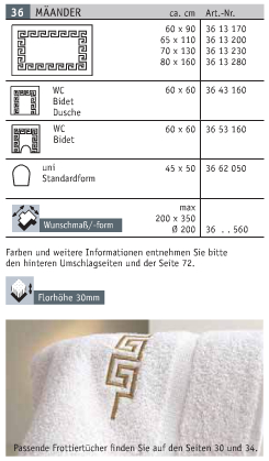 Badteppich aus Polyacryl in vielen Farben und Maßen erhältlich! Außerdem erhalten Sie auch die passenden Frottiertücher dafür.
