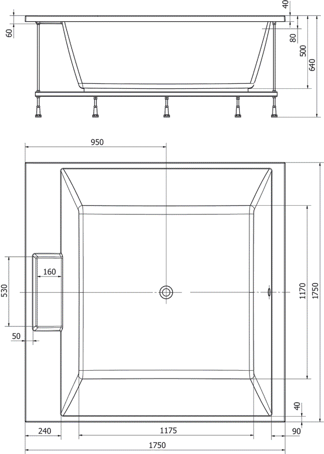 Maße: 175 x 175 x 50cm